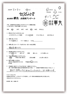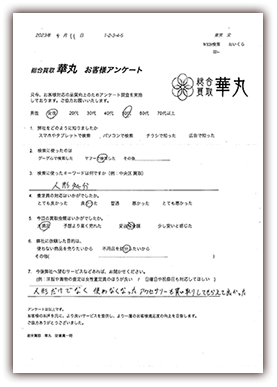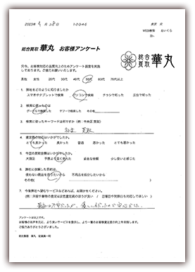 40年前に娘に買ったひな人形。使う事もなく困っていたところ華丸さんを知って呼んでみました。とても丁寧に査定していただき買取してもたいました。買取金額も大満足です。