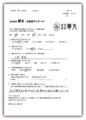 優しい方で良かったです。安心出来たので色々出してしまいました。価格も思ってたより高かったです。